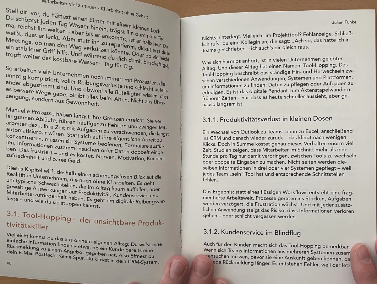 Das Buch räumt mit falschen Vorstellungen über KI und Automatisierung auf und vermittelt dir einen praxisnahen Fahrplan, wie du Kosten massiv senkst und dein Unternehmen zukunftssicher aufstellst. Du lernst, wie du KI nicht als Zukunftsvision, sondern als sofort einsetzbaren Hebel nutzt, der echte Ergebnisse bringt.